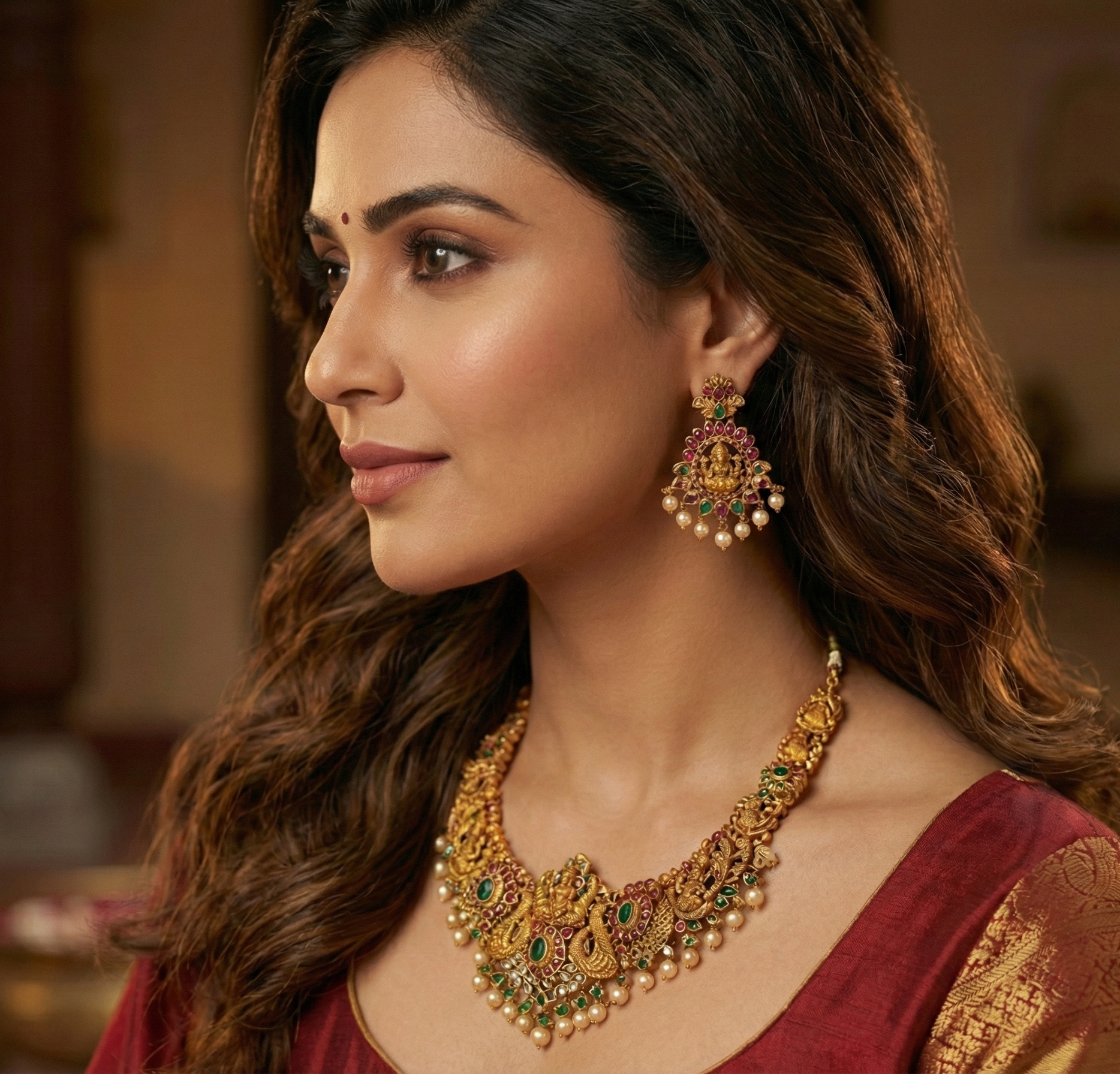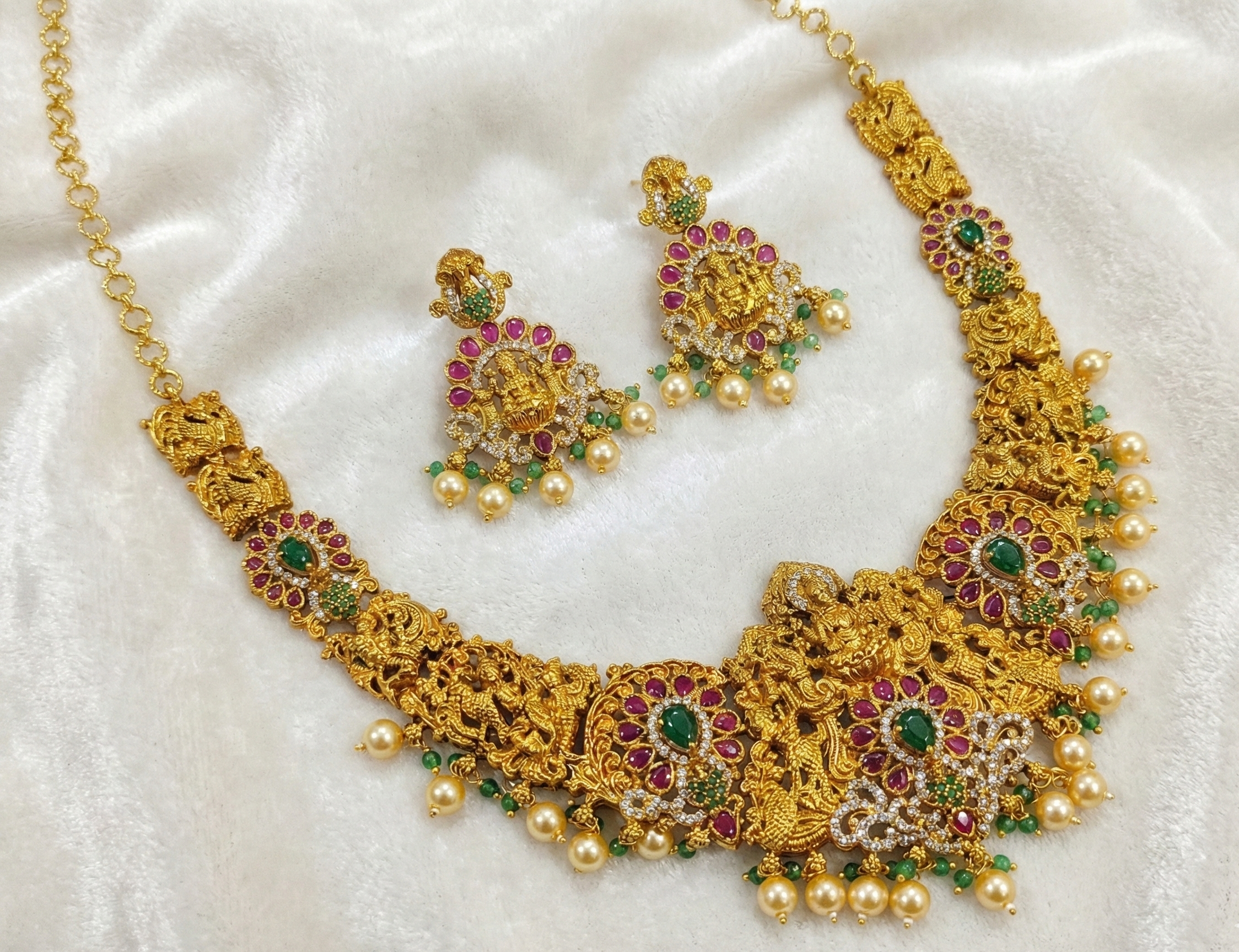Finishing Matt with pota stones and Laxshmi Haramwith CZ beads and Swarovski beads