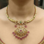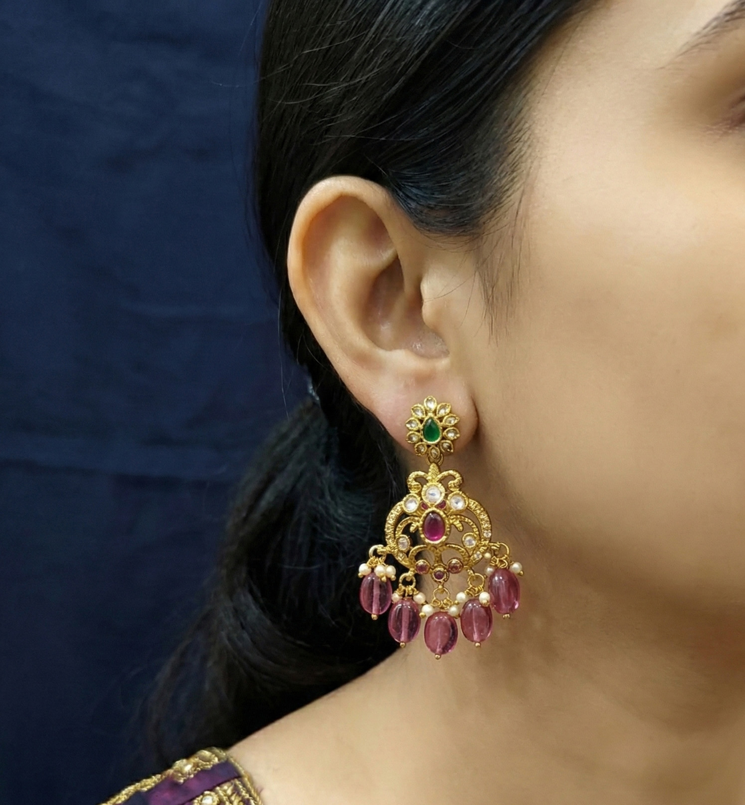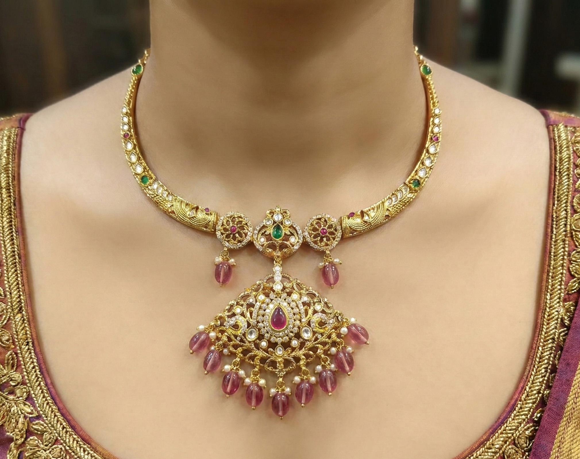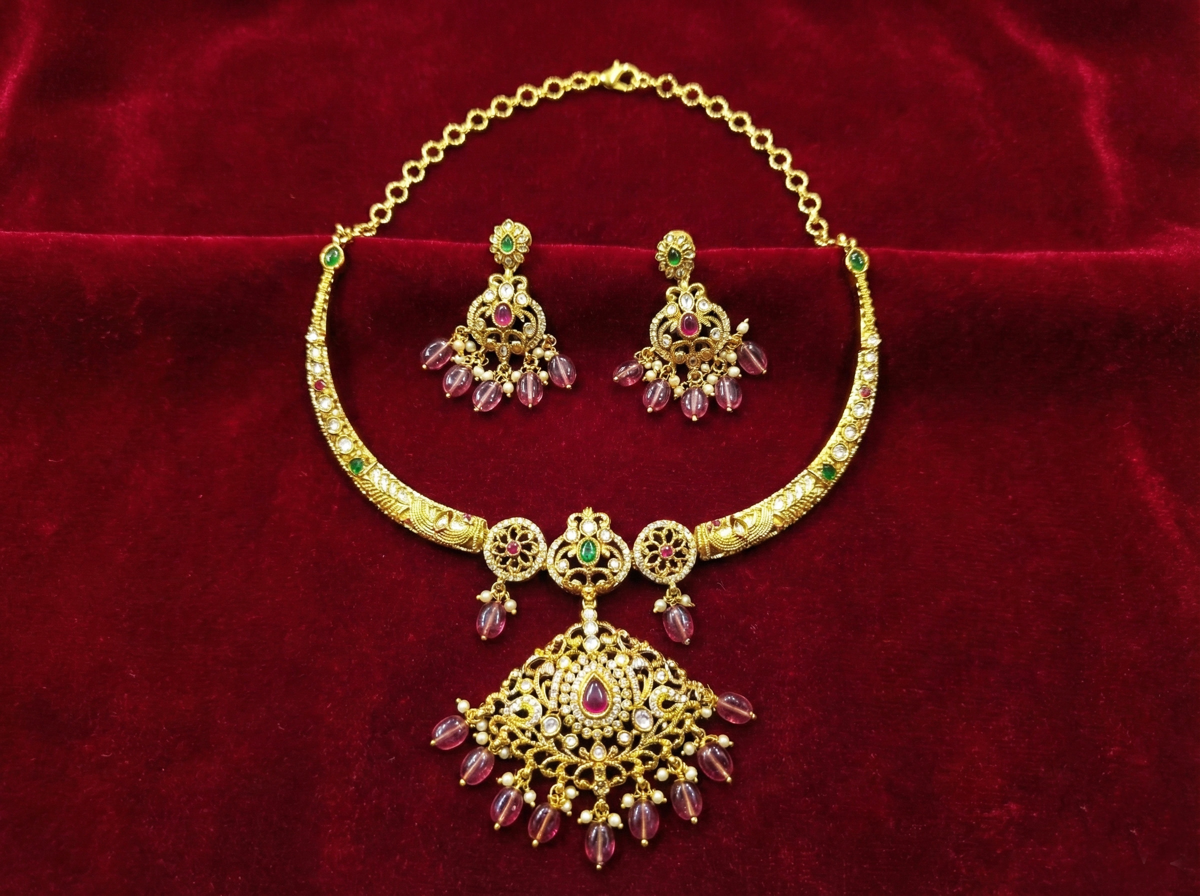 Kanti Necklace with CZ Stones and Monalisa beads, Finishing Matt